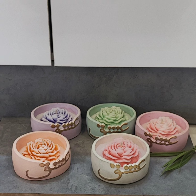 ظرف عشق سنگی با تزیین گل آلاله مناسب هدیه دادن و دکوراسیون