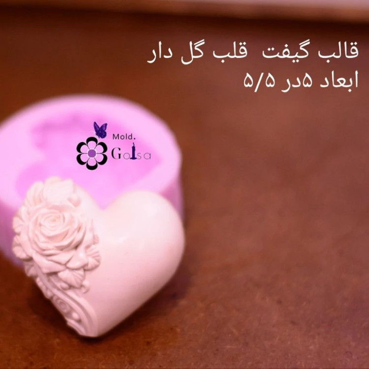قالب گیفت قلب با گل مناسب شمعسازی ابعاد 5در 5/5